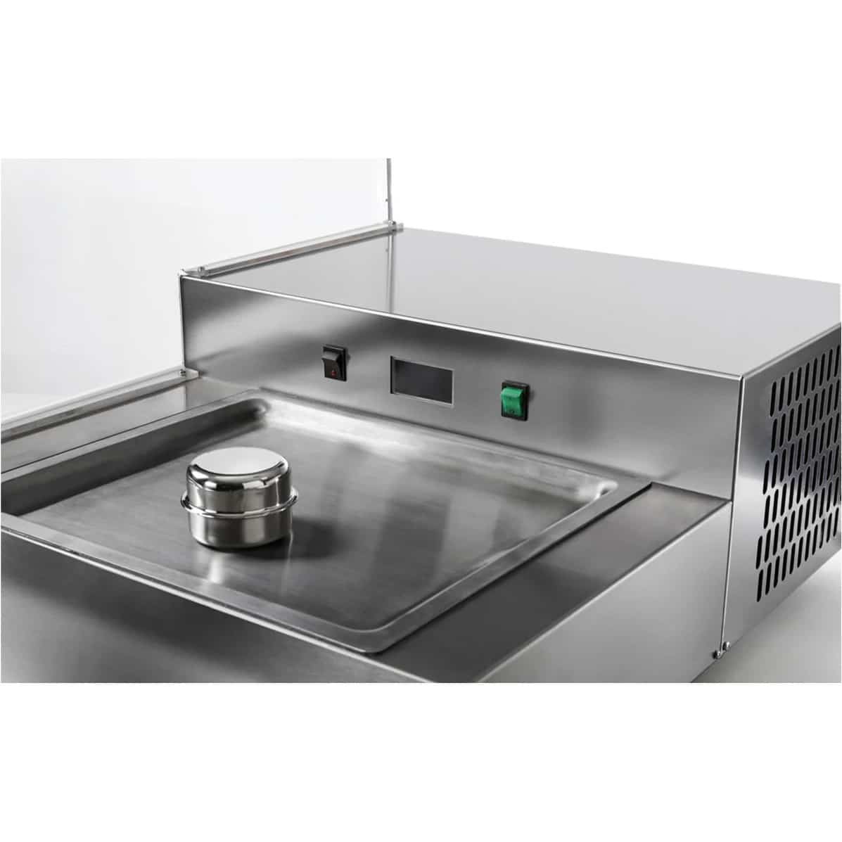 Ovaj aparat je opremljen pločom za hladnu obradu hrane. Može da održava temperaturu od -20 stepeni Celizijusa, što omogućava da se sladoled napravi za samo 30 sekundi. Opremljen LED osvetljenjem i pleksiglas zaštitom.