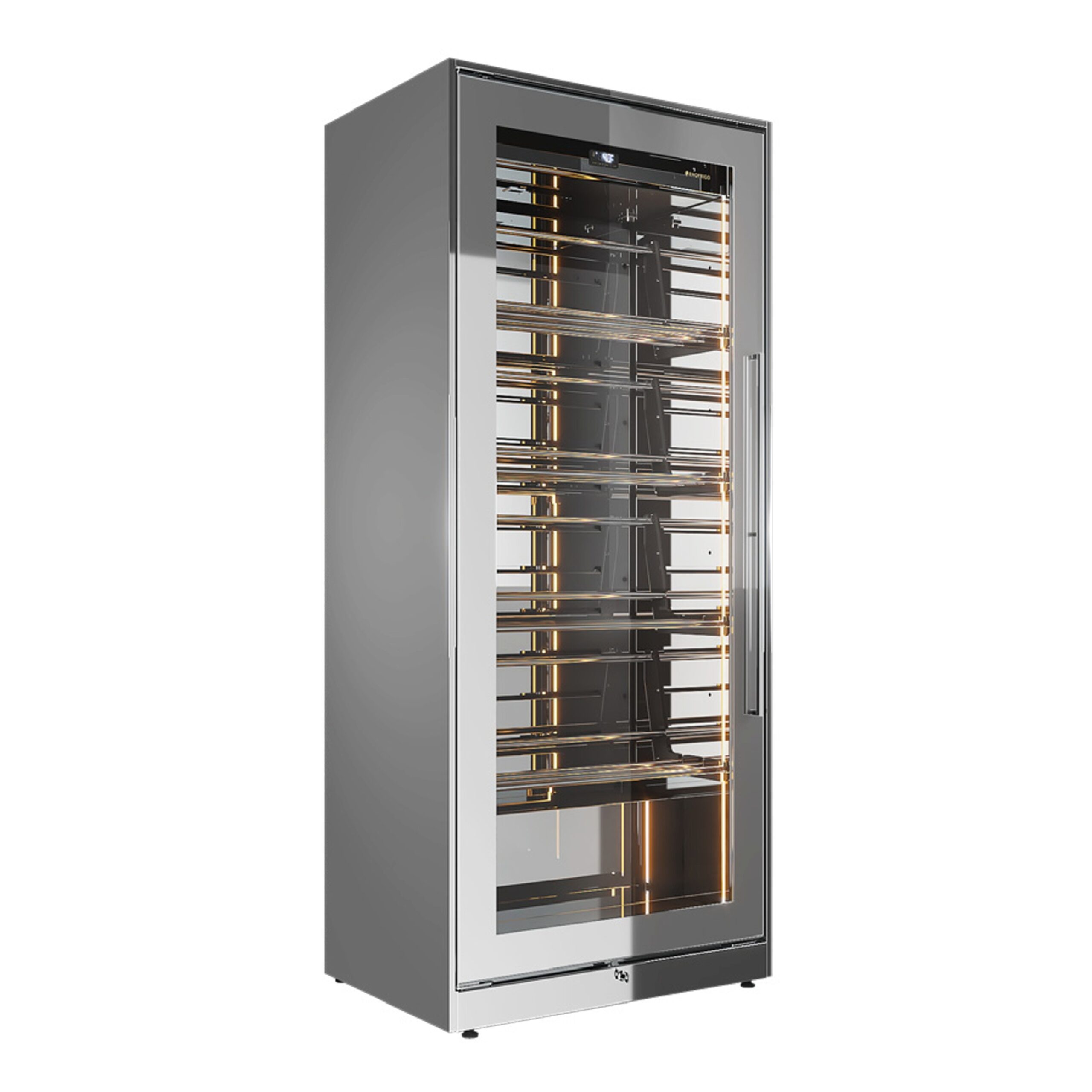 INFINITY vinske vitrine se ističu svojom elegancijom, sa preciznim, jasno definisanim linijama, savršenom geometrijom i najsavremenijom tehnologijom. Unutrašnje LED osvetljenje duž bočnih panela i unutrašnjost od nerđajućeg čelika stvaraju impresivan efekat dubine i igre svetlosti, poboljšavajući celokupan vizuelni utisak.