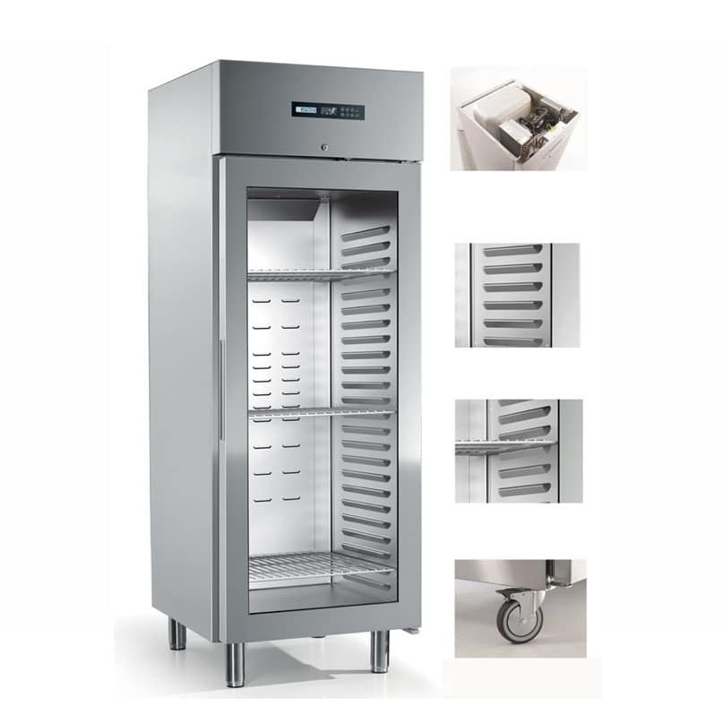 Vertikalni frižider Energy Lux 700 je dostupan sa punim ili staklenim vratima, kao i u minusnom režimu (zamrzivač).