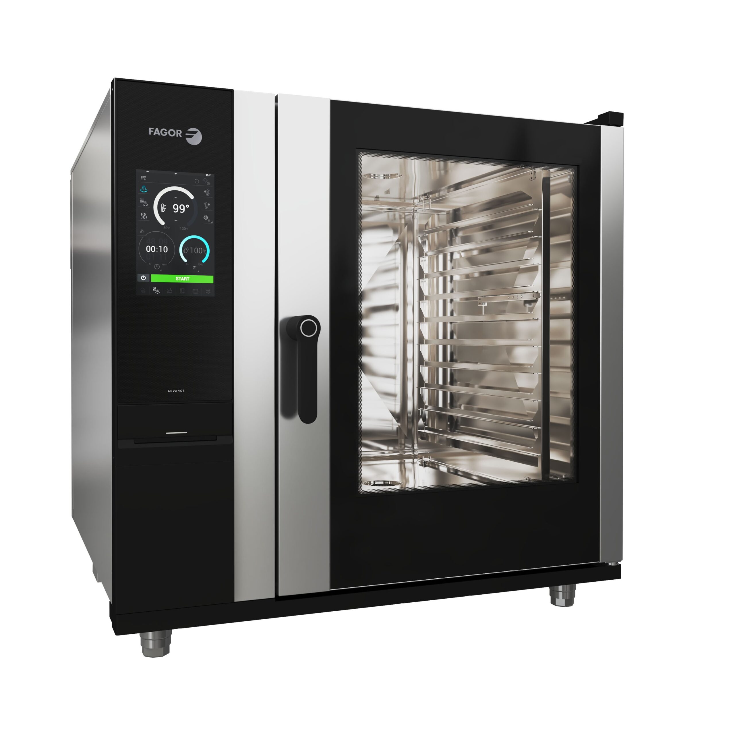 iKORE Advance generacija konvektomata uključuje Fagor Touch sistem, ekran osetljiv na dodir, potpuno zatvoren u staklu, vrlo jednostavan za čišćenje, vodootporan i rezistentan na ogrebotine.