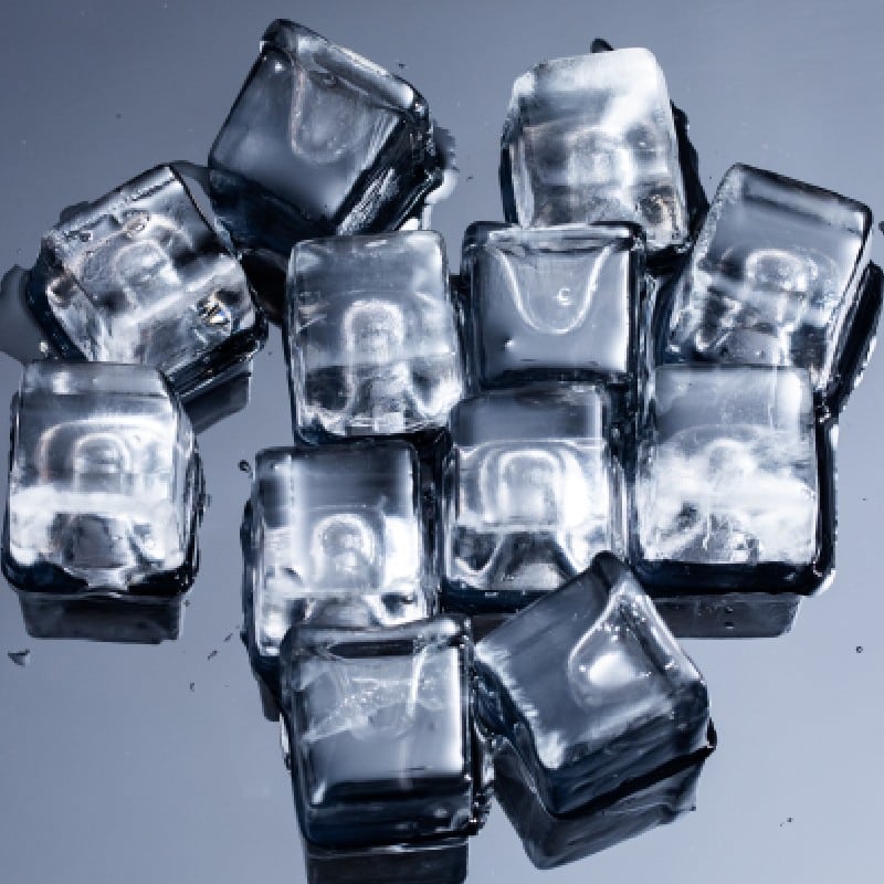 Ledomati proizvode kristalno čiste, tvrde i sporo topeće kocke leda Ø30 mm – H 30 mm, težine oko 25g.