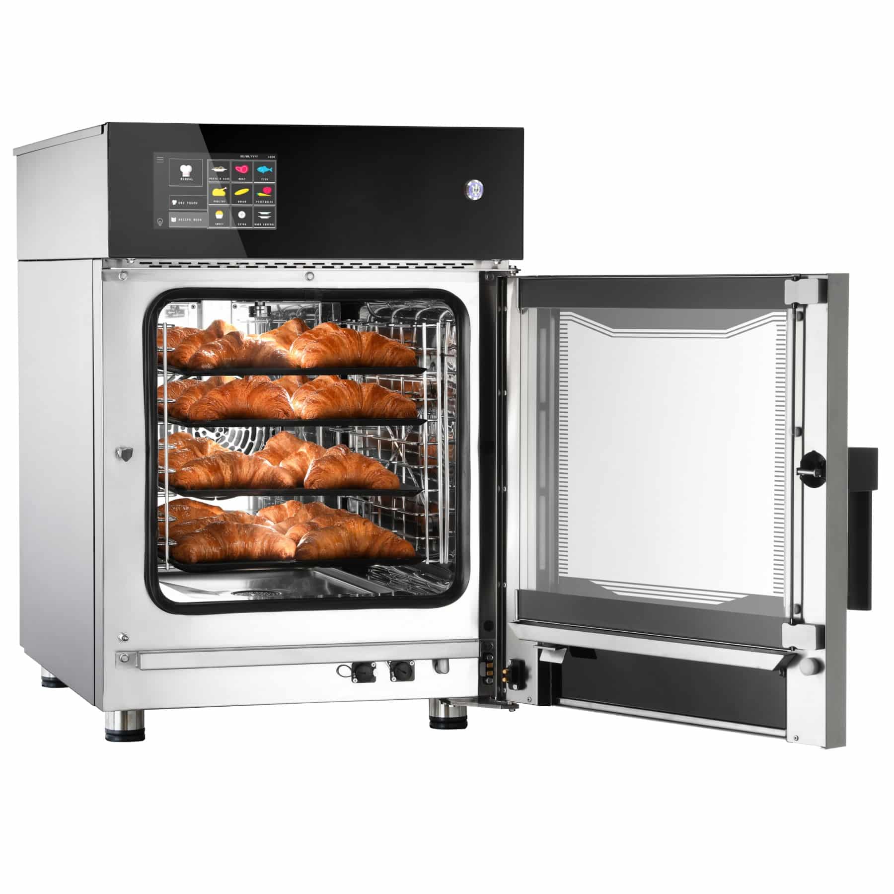 - Konvektomat na 6 nivoa sa „Rack Control“ sistemom, ima mogućnost pripreme različitih jela, a sa završetkom u isto vreme.