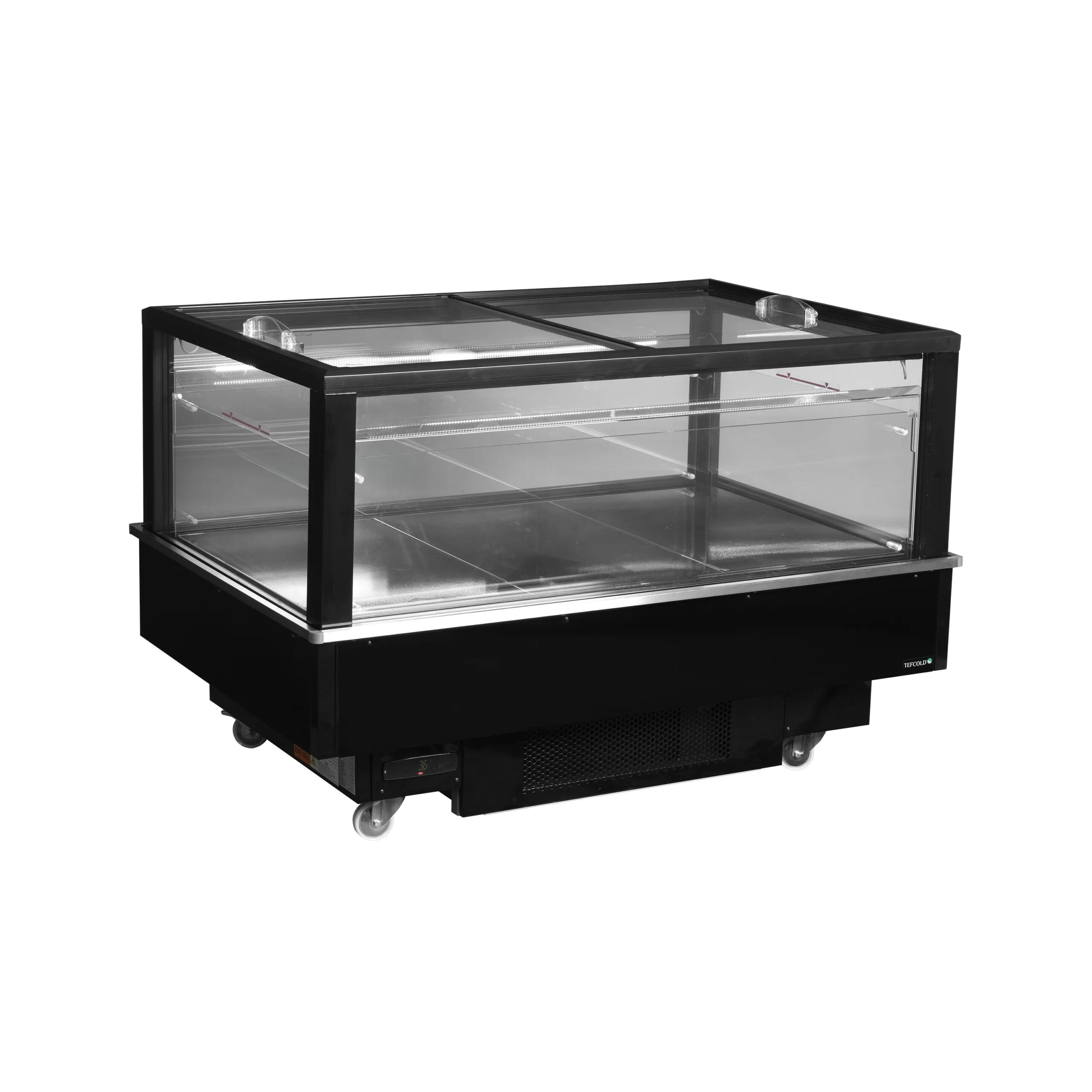 Zastakljen sa sve 4 strane, ima dva klizna staklena poklopca, u kombinaciji sa LED unutrašnjim osvetljenjem nudi odličnu vidljivost proizvoda, bez obzira iz kog pravca kupac dolazi. Ispod staklenih stranica ima dovoljno prostora za brendiranje.