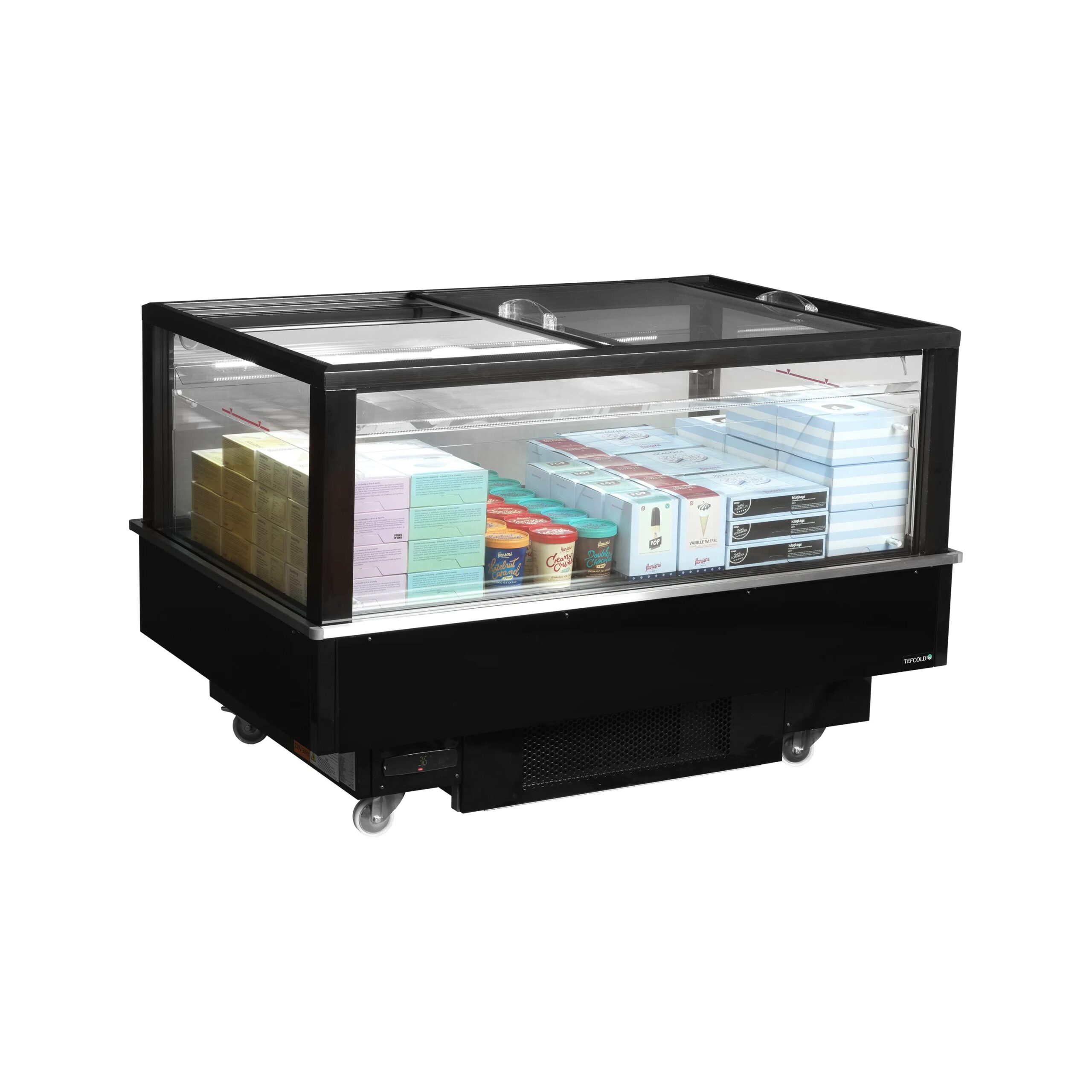 EIB-D1015-B1 je mobilna rashladna jedinica koja predstavlja fleksibilno rešenje za hlađenje u maloprodajnim objektima. Može se koristiti kao zamrzivač za sladoled tokom leta i prebaciti na plusni režim van letnje sezone. Postavljen je na jakim točkićima, što znači da se može lako premestiti na novu lokaciju u okviru prodavnice, kada se promeni izloženi proizvod.