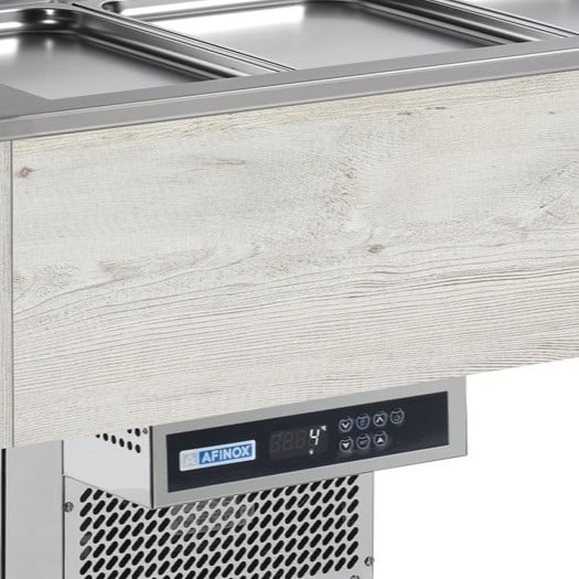Ostrvski hladni sto za 4 GN 1/1 posude – bež boja drveta (hemlock nordique)