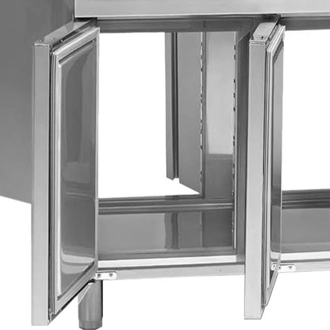 Inovativni zahvaljujući elektronskom digitalnom displeju sa inovativnim karakteristikama (kontrola prekomernog hlađenja i vlažnosti). Vrata se automatski zaustavljaju na 90°.Hladni sto minusni Tefcold SK6210BT/+SP
