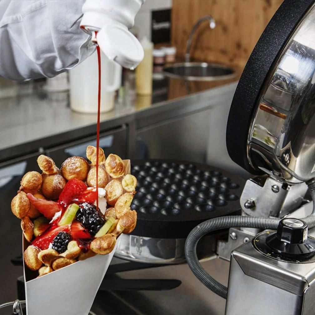 Bubble waffle je idealno rešenje za sve koji žele da zadive svoje kupce novom idejom. Može se služiti u različitim varijacijama, satkim ili slanim, i punjen po želji – sladoledom, kremovima, nadevima, voćem, čokoladom…