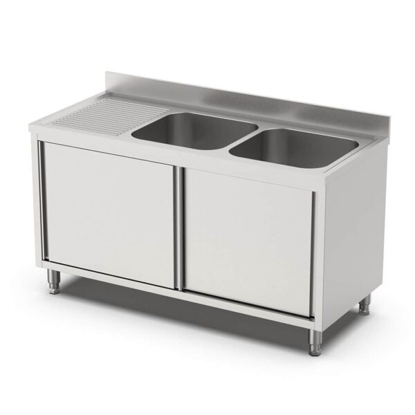 Profesionalna kuhinjska dvodelna sudopera širine 200 cm – zatvorena sa kliznim vratima