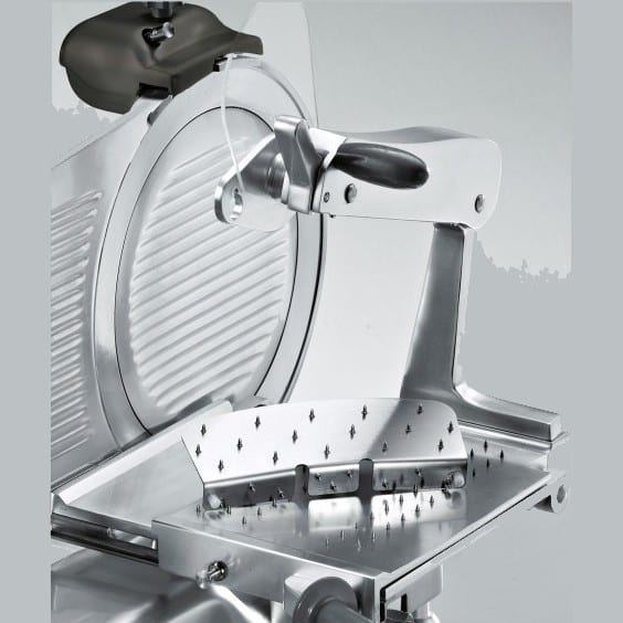 Nož mesoreznice, prečnika fi330, vertikalno postavljen, omogućava tanak rez i najfinijih proizvoda.