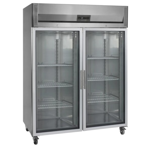 Profesionalni dvokrilni frižider – inox – staklena vrata – 1400 litara: