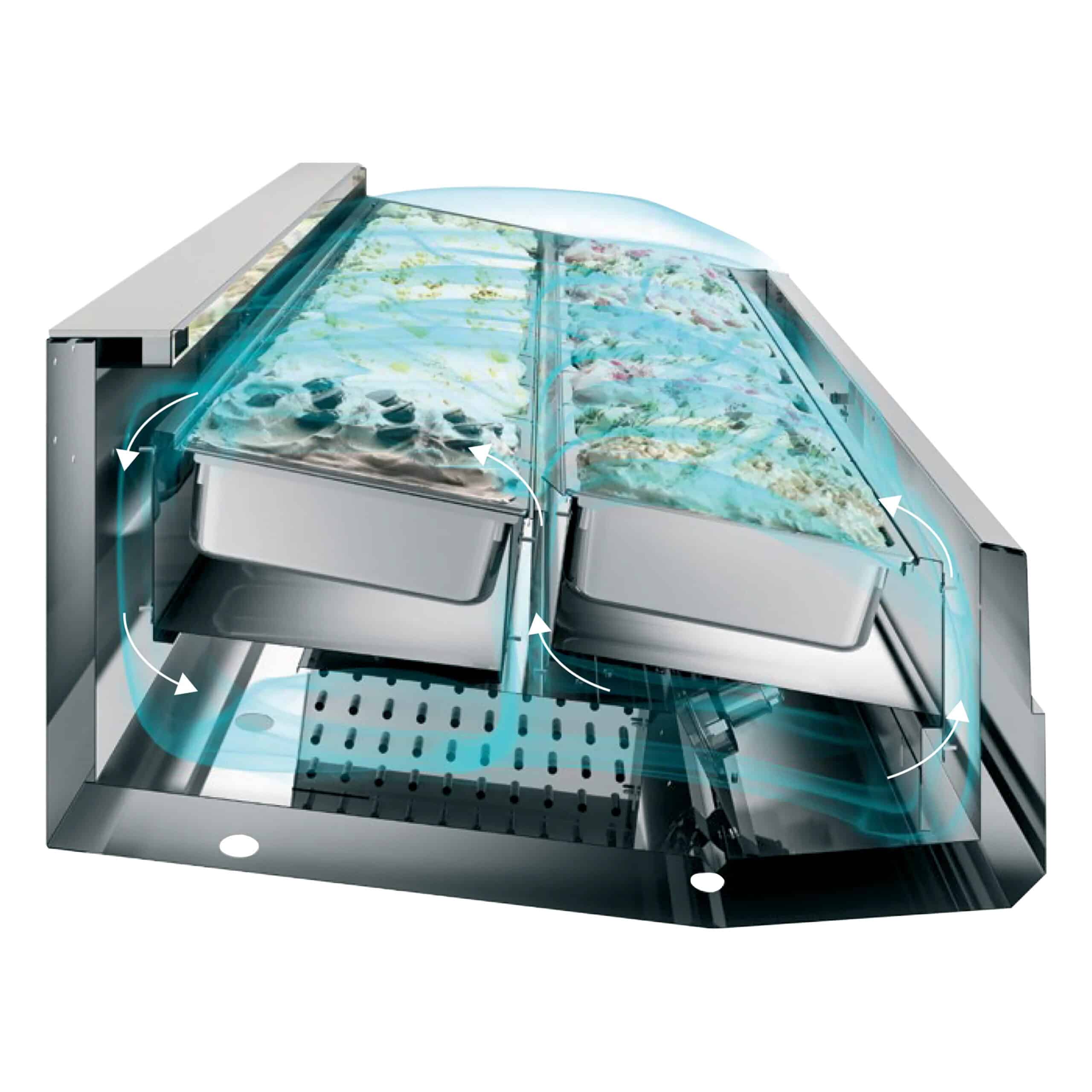 SUPER CAPRI su profesionalni zamrzivači koji imaju sistem za hlađenje pomoću ventilatora, sa dvostrukim protokom vazduha koji obezbeđuje da se temperatura ravnomerno distribuira u dva reda kaseta kako bi se održao ukus i tekstura sladoleda ili gelata.