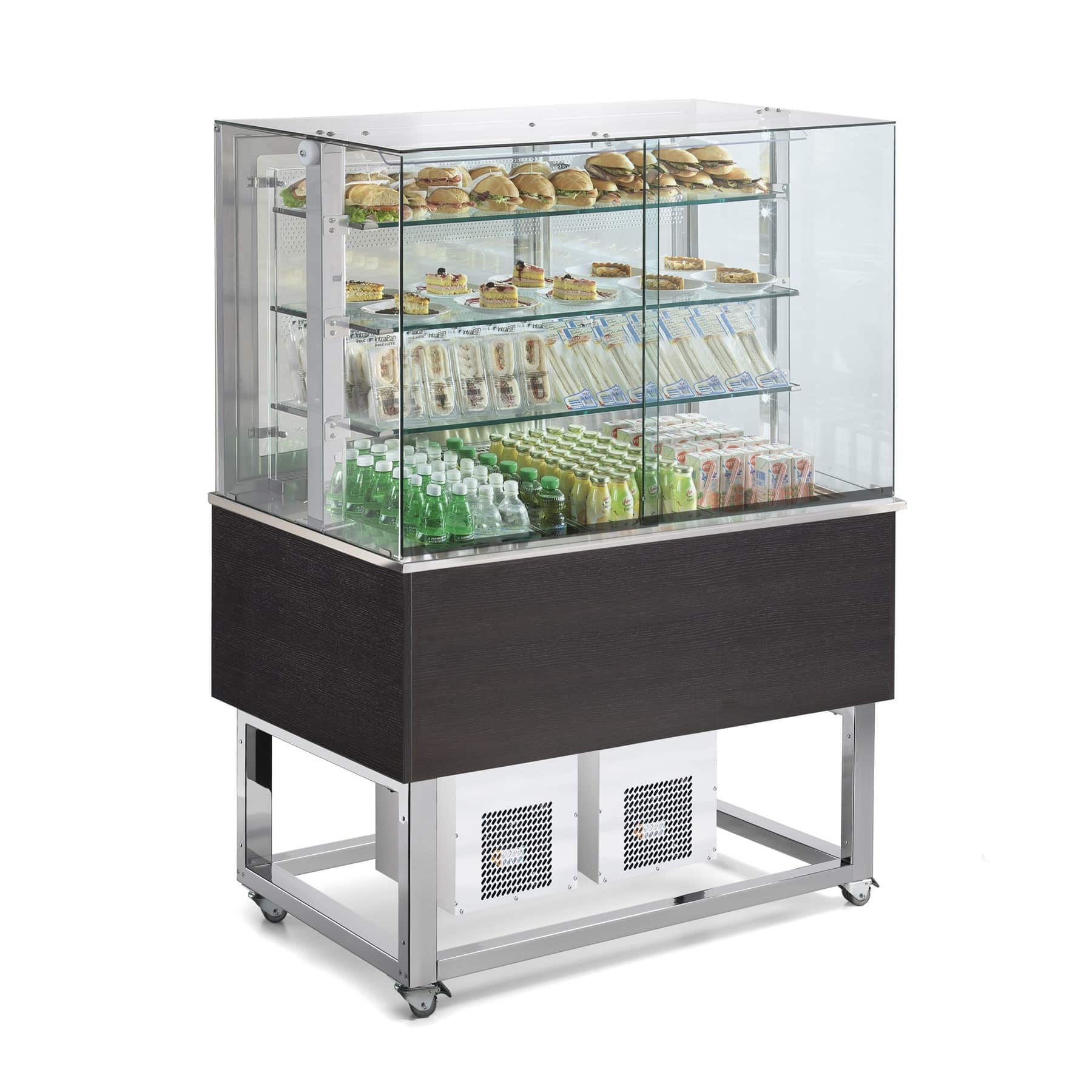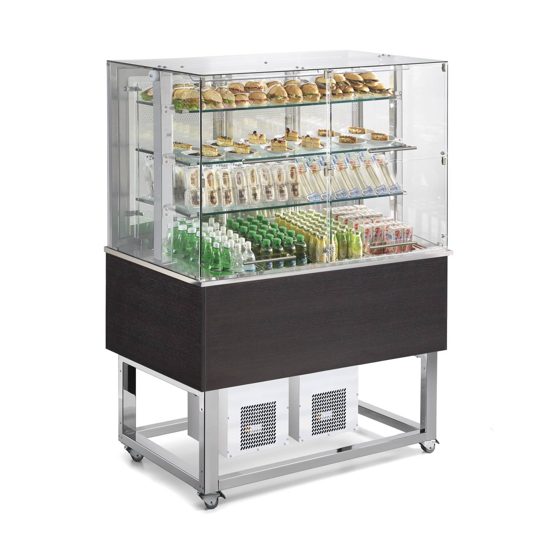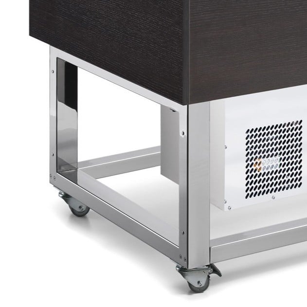 Essence Plus – hladni bazeni i vitrine za samoposlužne linije napravljeni su od nerđajućeg čelika AISI 304, obloženi drvetom (Wenge ili hemlock nordique), sa robusnim hromiranim ramom na lepo dizajniranim točkovima za lakše premeštanje u objektu.