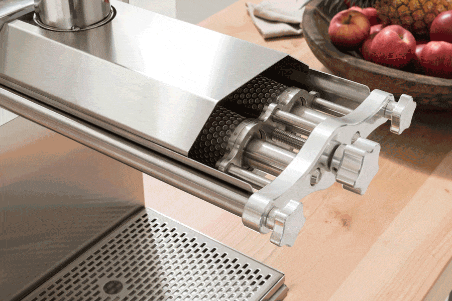 - Radi na principu drobljenja voća-povrća i bukvalno mehaničkog ceđenja kroz sito. Na jednoj strani se izdvaja hladno ceđeni sok, a na drugoj otpad ceđenja - pulpa.