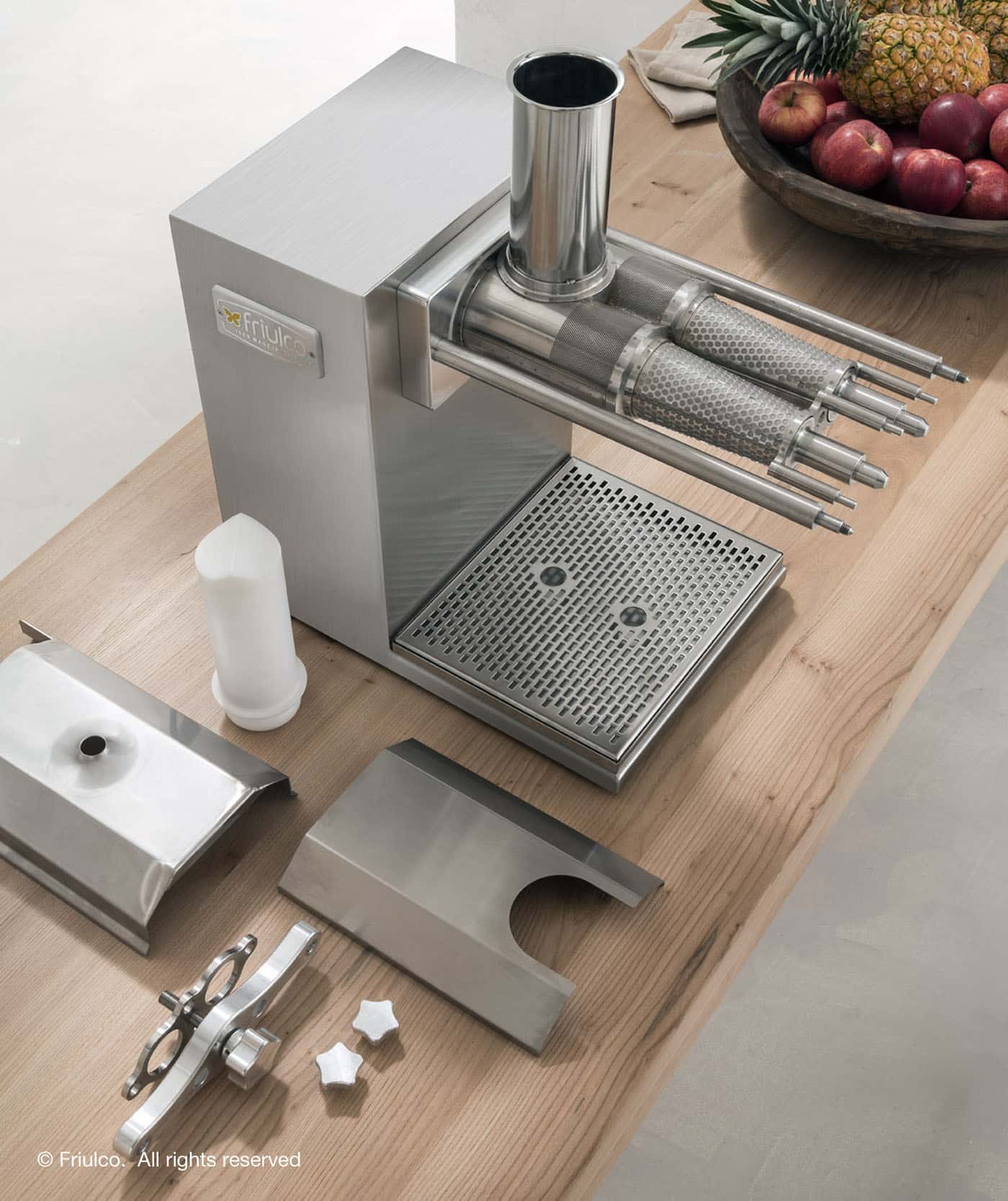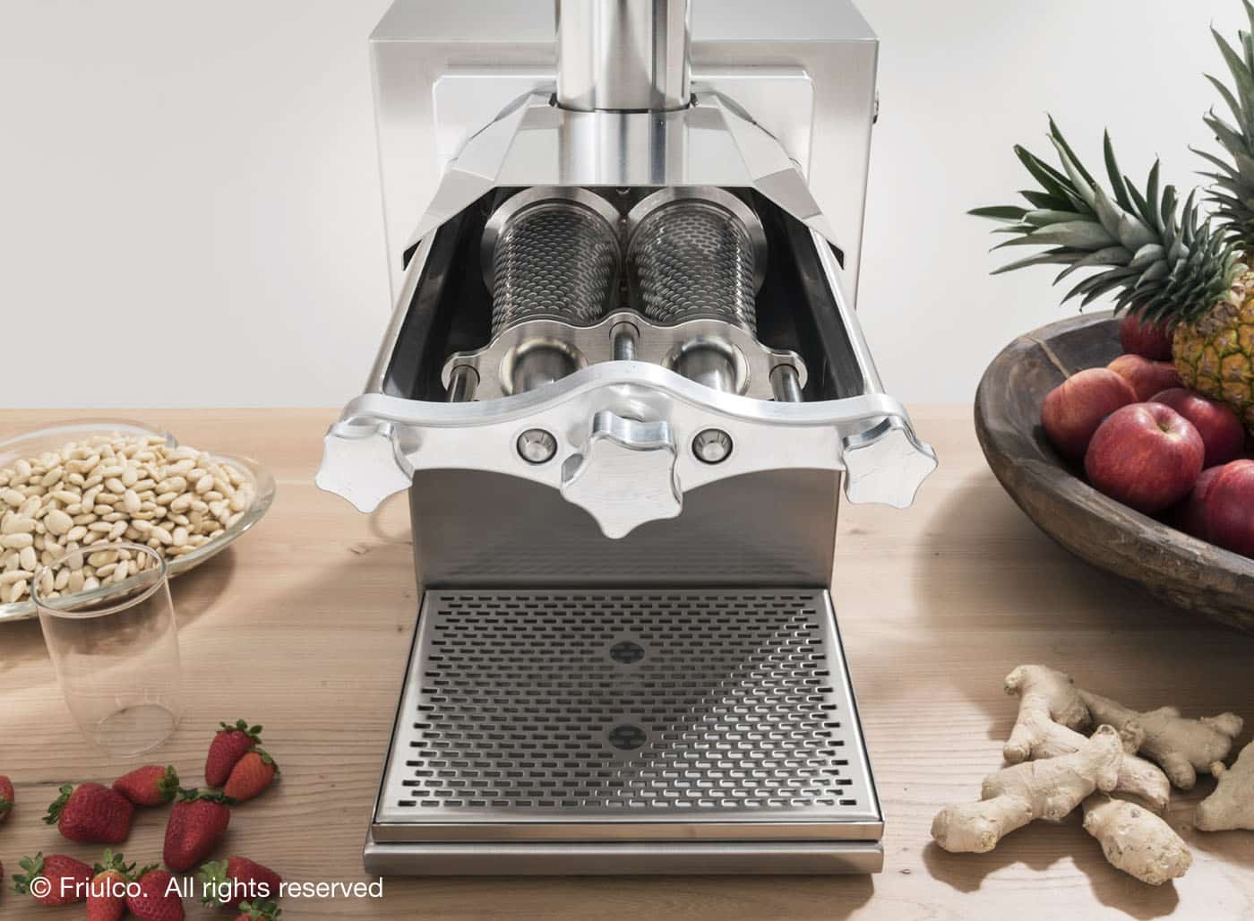 - Radi na principu drobljenja voća-povrća i bukvalno mehaničkog ceđenja kroz sito. Na jednoj strani se izdvaja hladno ceđeni sok, a na drugoj otpad ceđenja - pulpa.