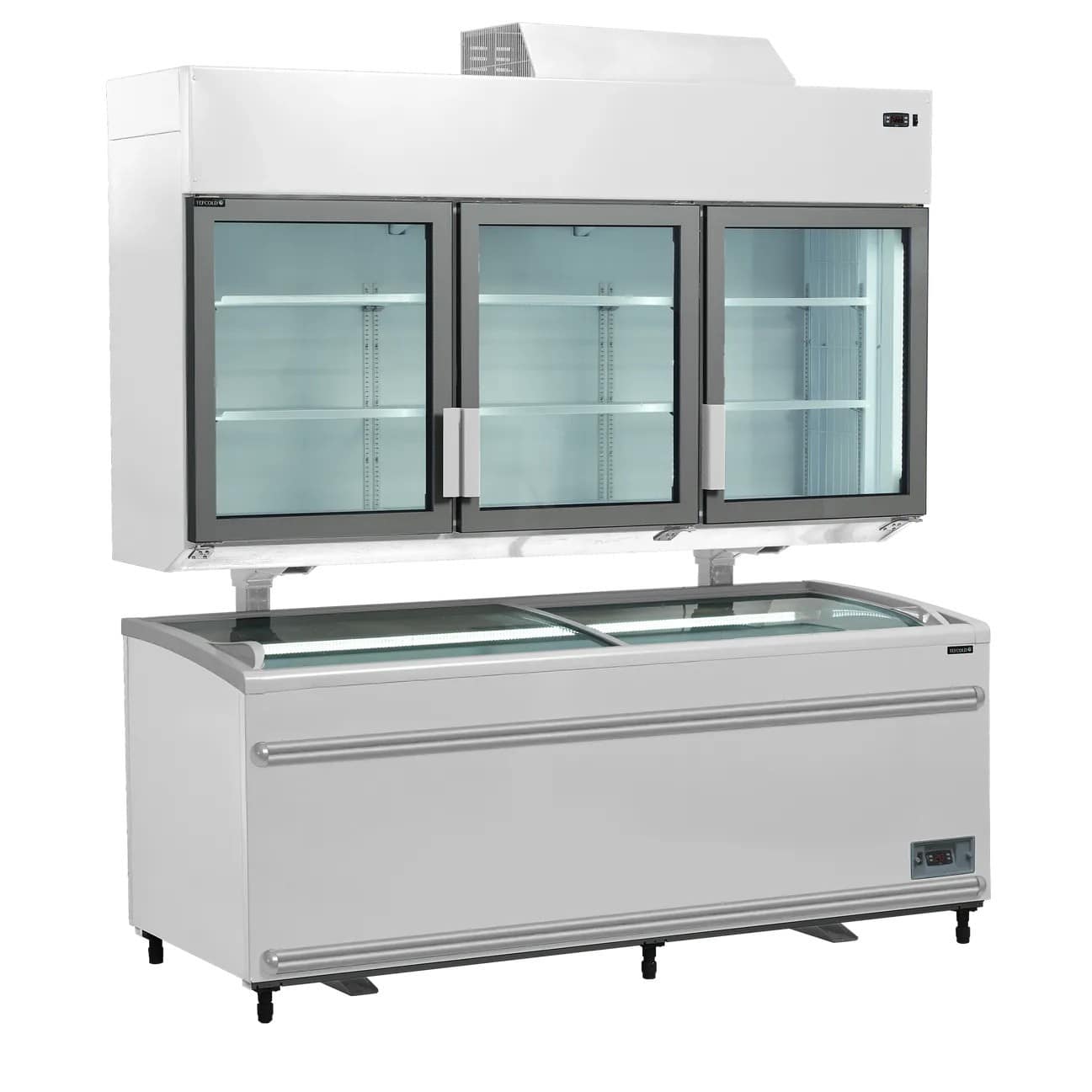 Zidni zamrzivač frižider sa 3 vrata za maksimalno iskorišćen prostor u prehrambenoj prodavnici.