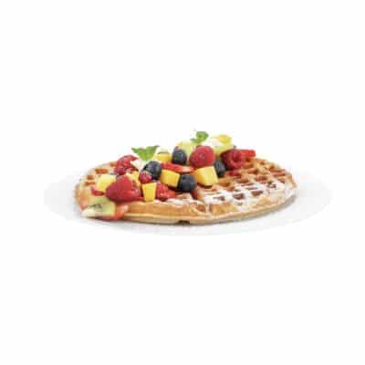Okrugli wafle se može služiti na tanjiru, dekorisan topinzima od voća ili čokolade, uz dodatak šlaga ili sladoleda.
