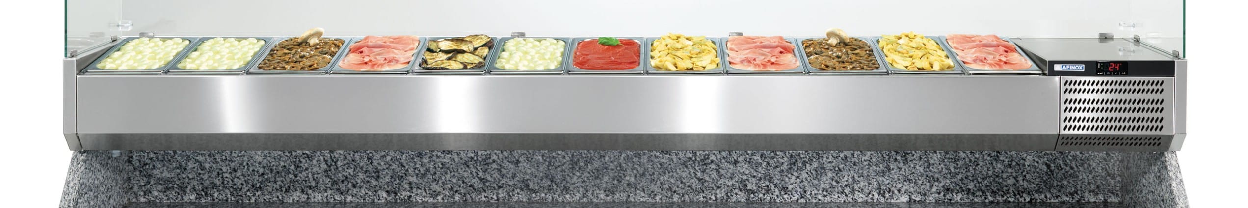 Nadgradna salatara za priloge 256cm za 12 posuda 1/3 GN